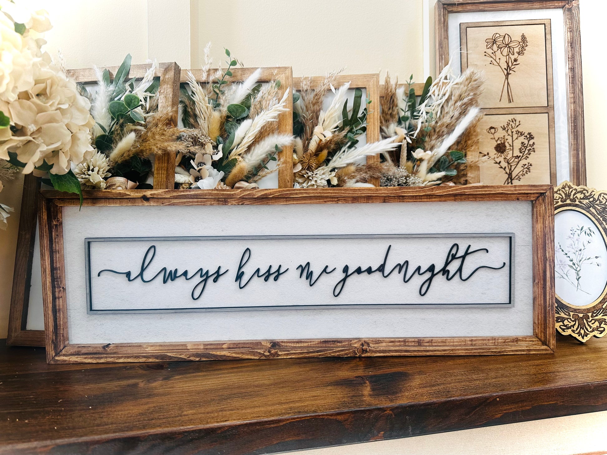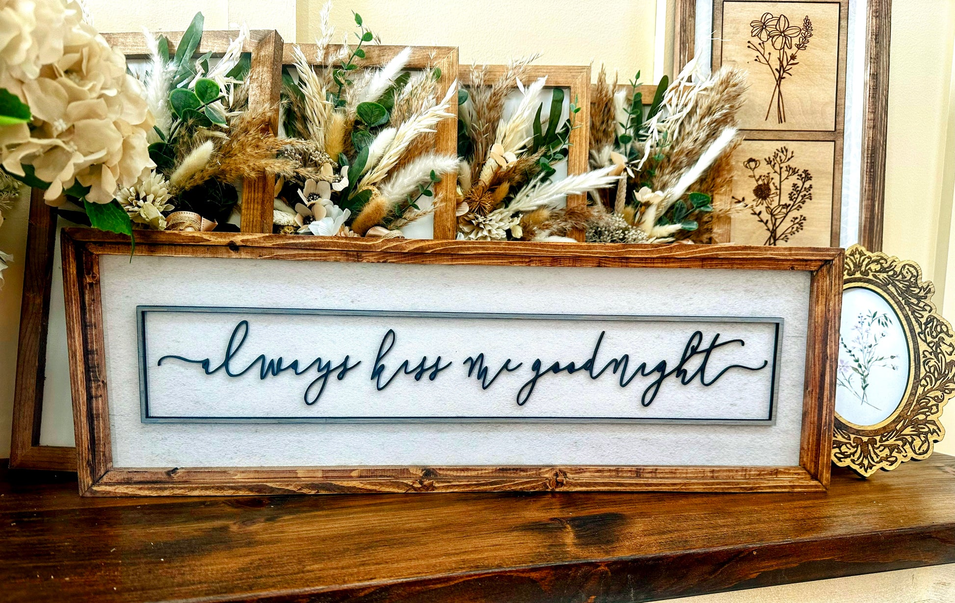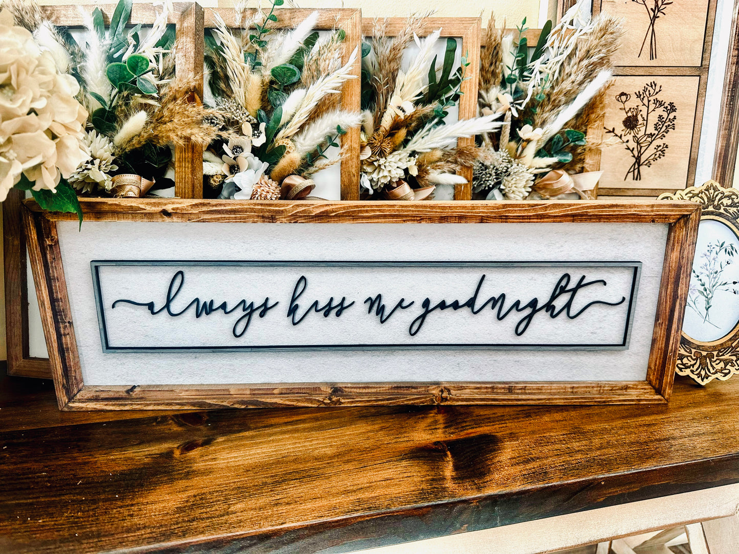Always kiss me goodnight 3D wood word art wood framed canvas sign