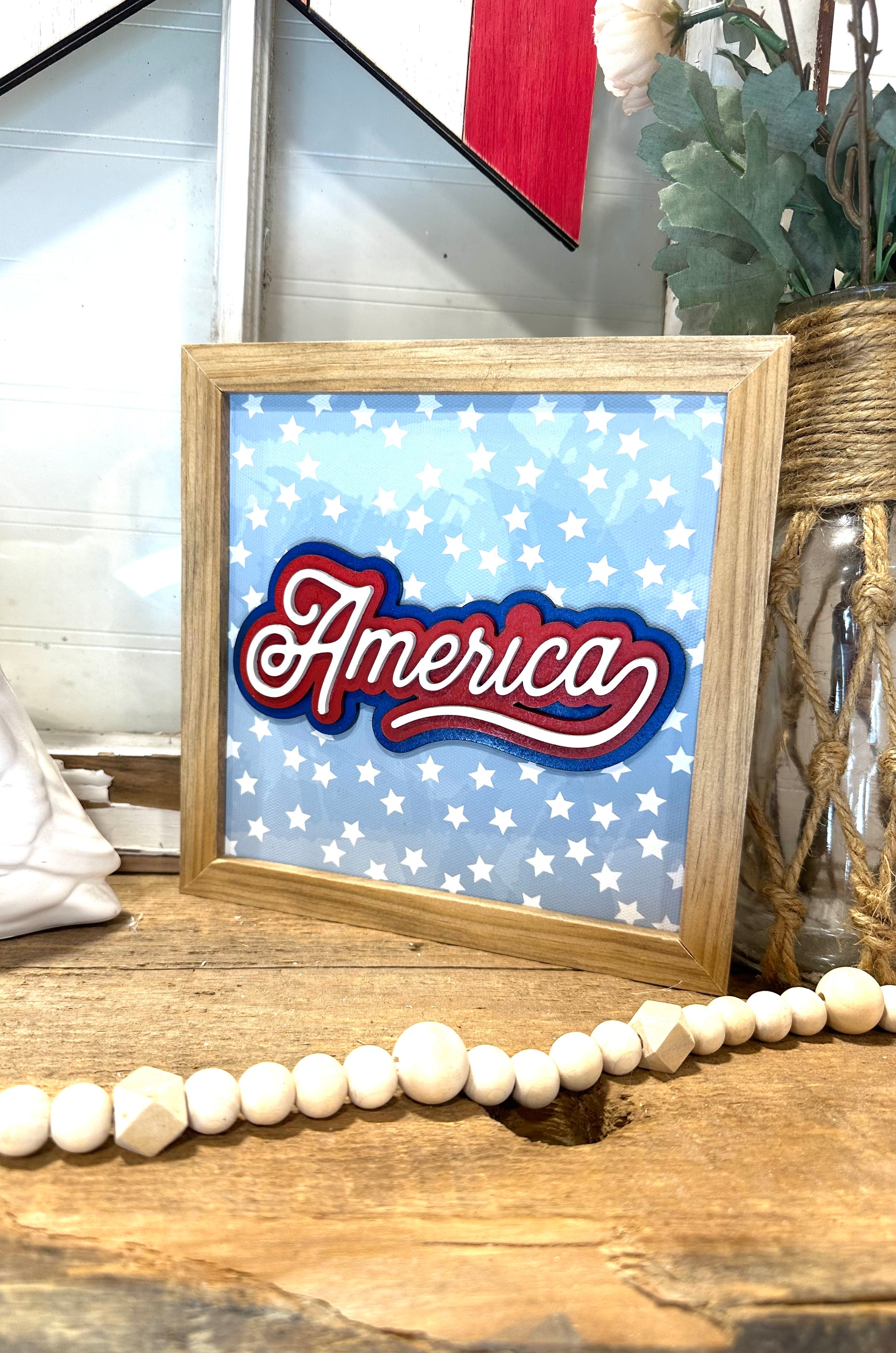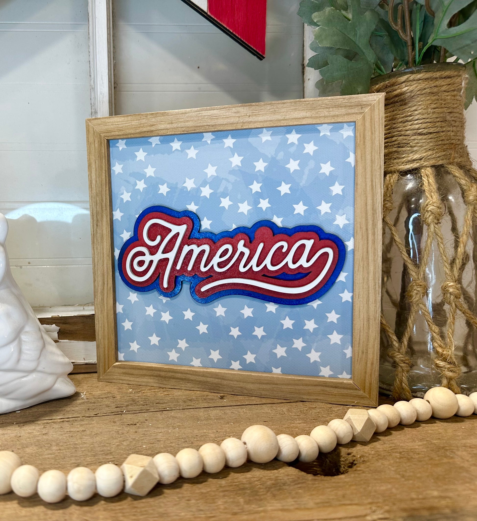 sign measures 7x7 and is framed in a 1 inch light weathered oak stained frame.