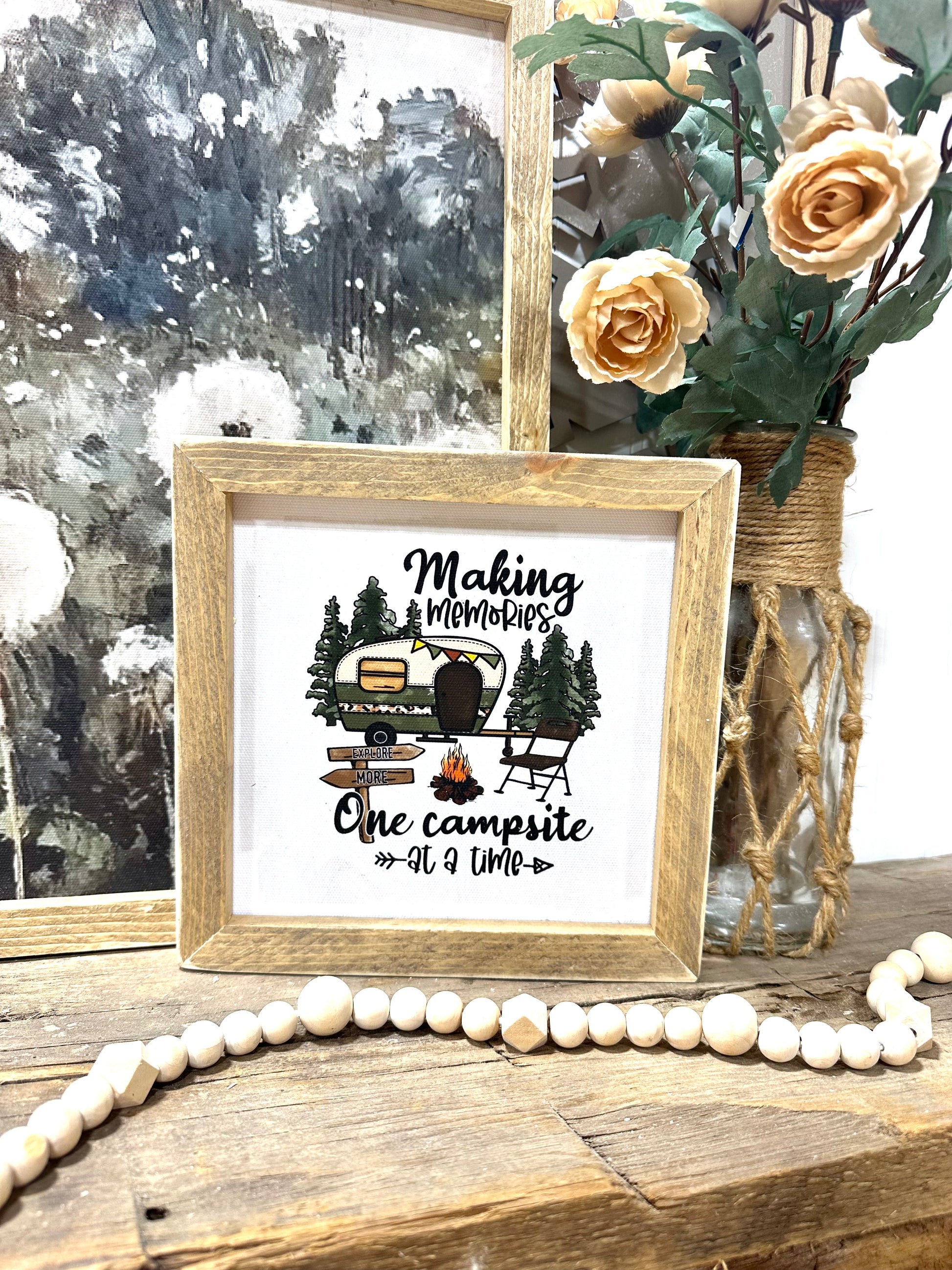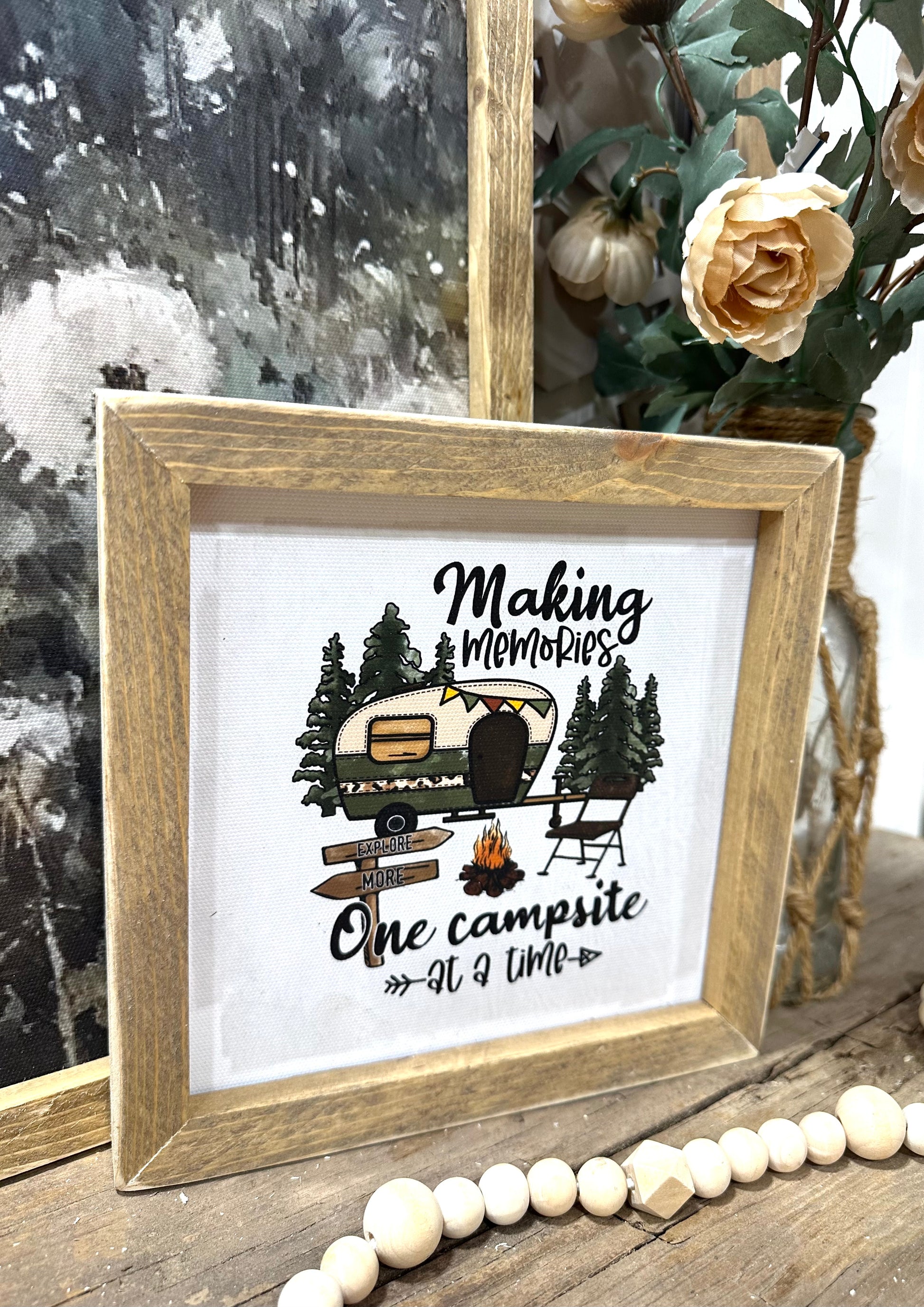 Making memories one campsite at a time framed canvas mini sign.