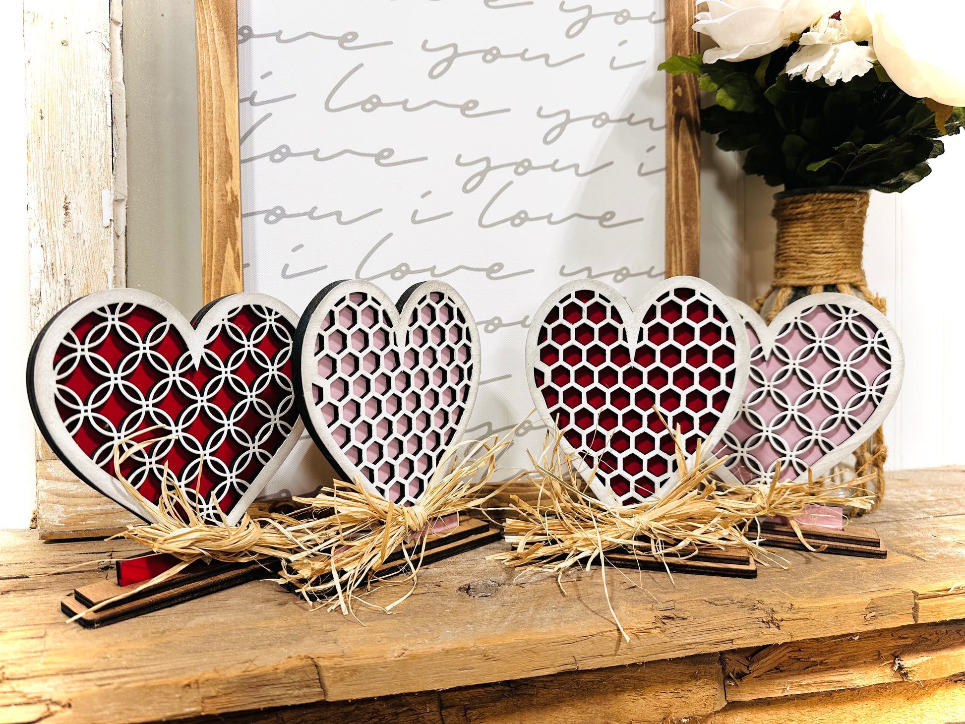 These Hearts are laser cut, hand painted, assembled and sealed with a clear coat.