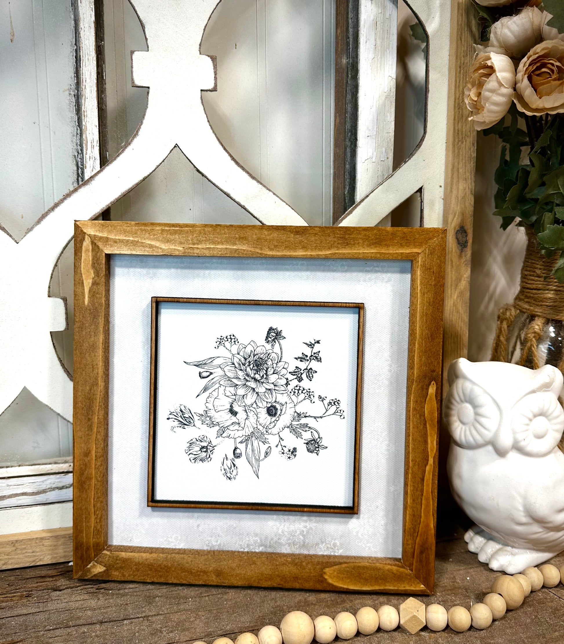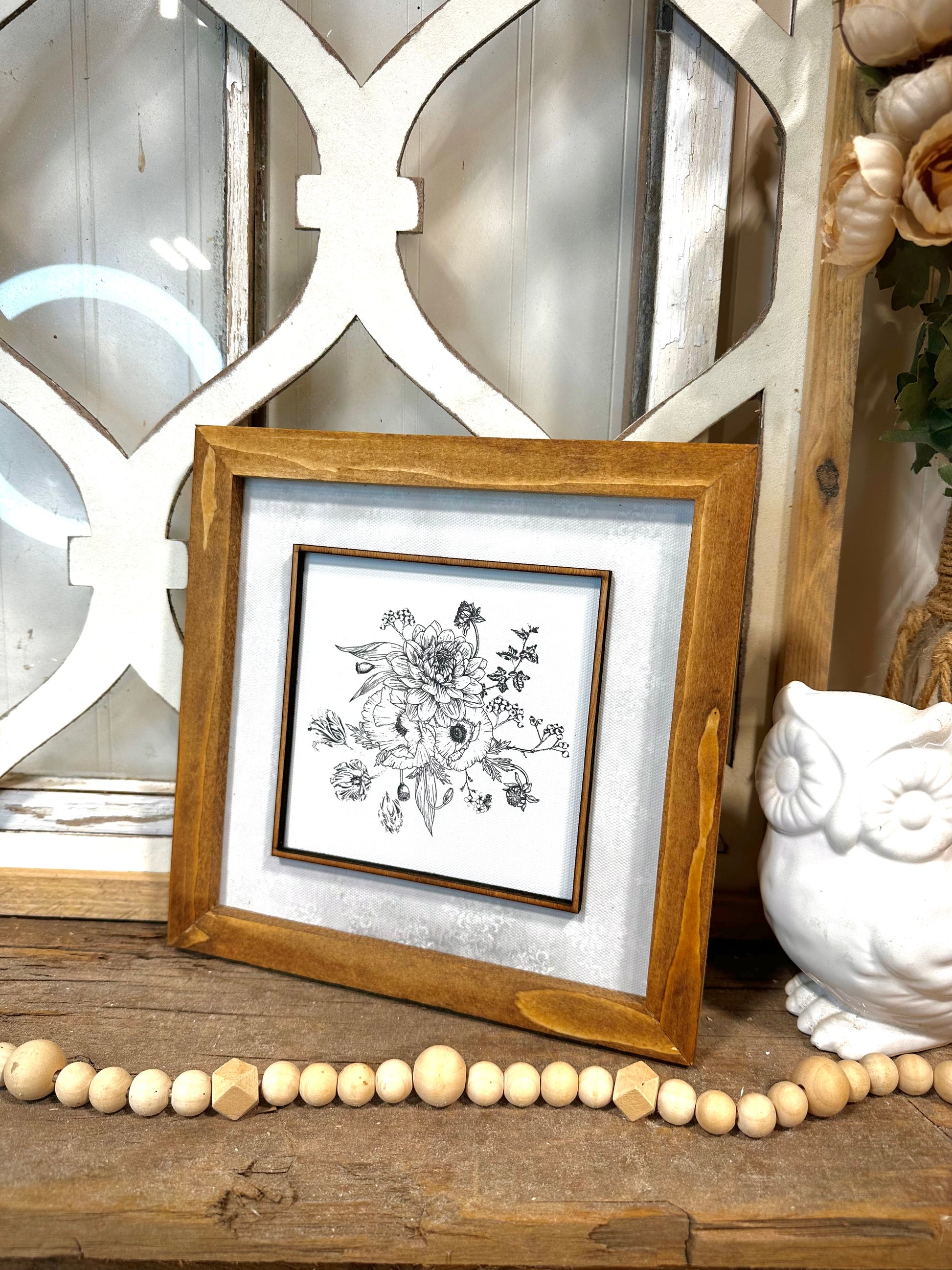 Elegant square botanical wood framed canvas wall art