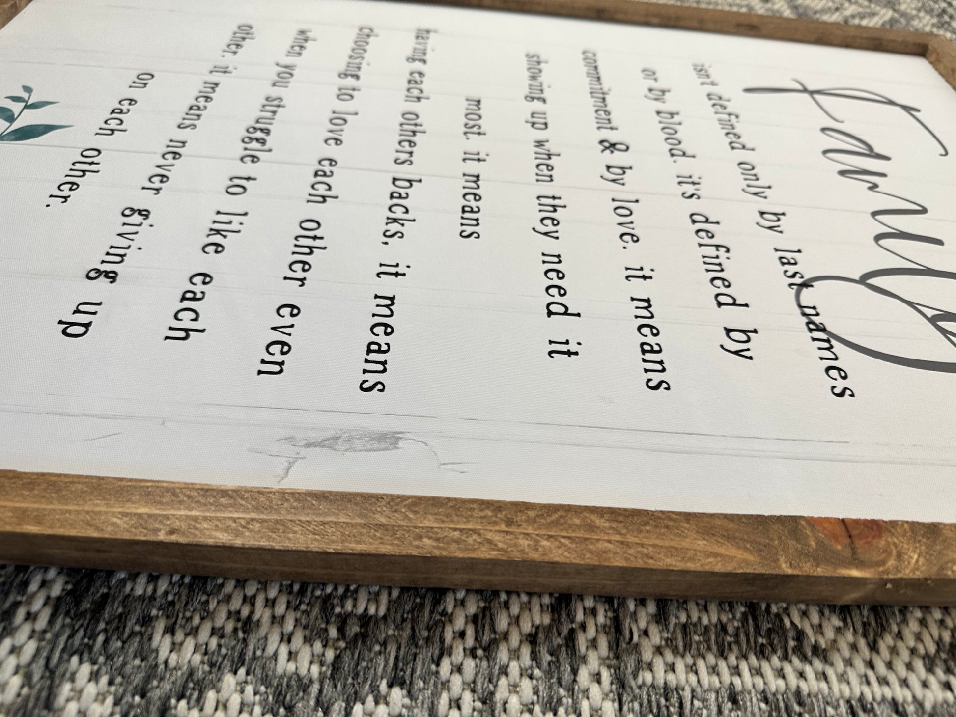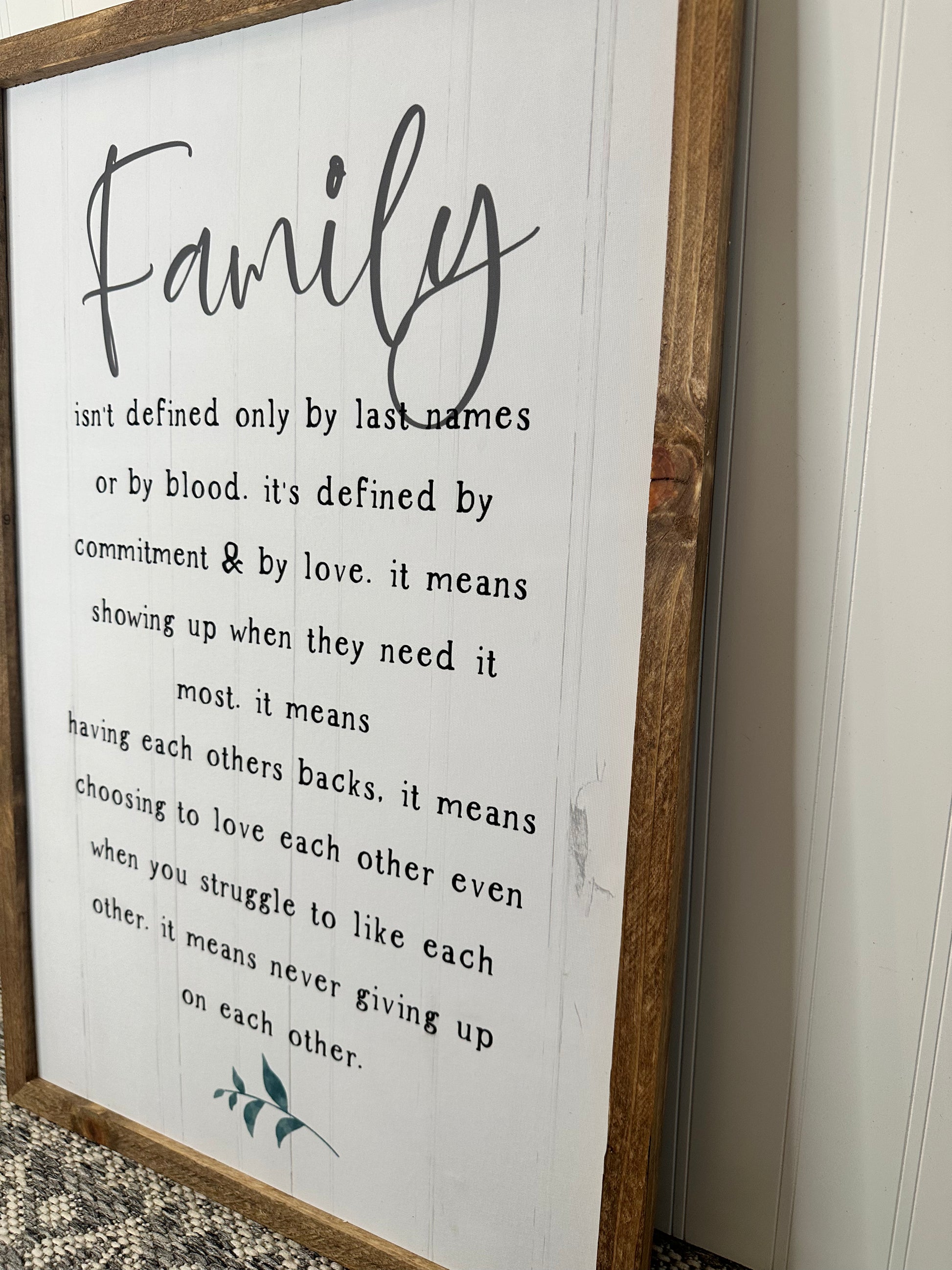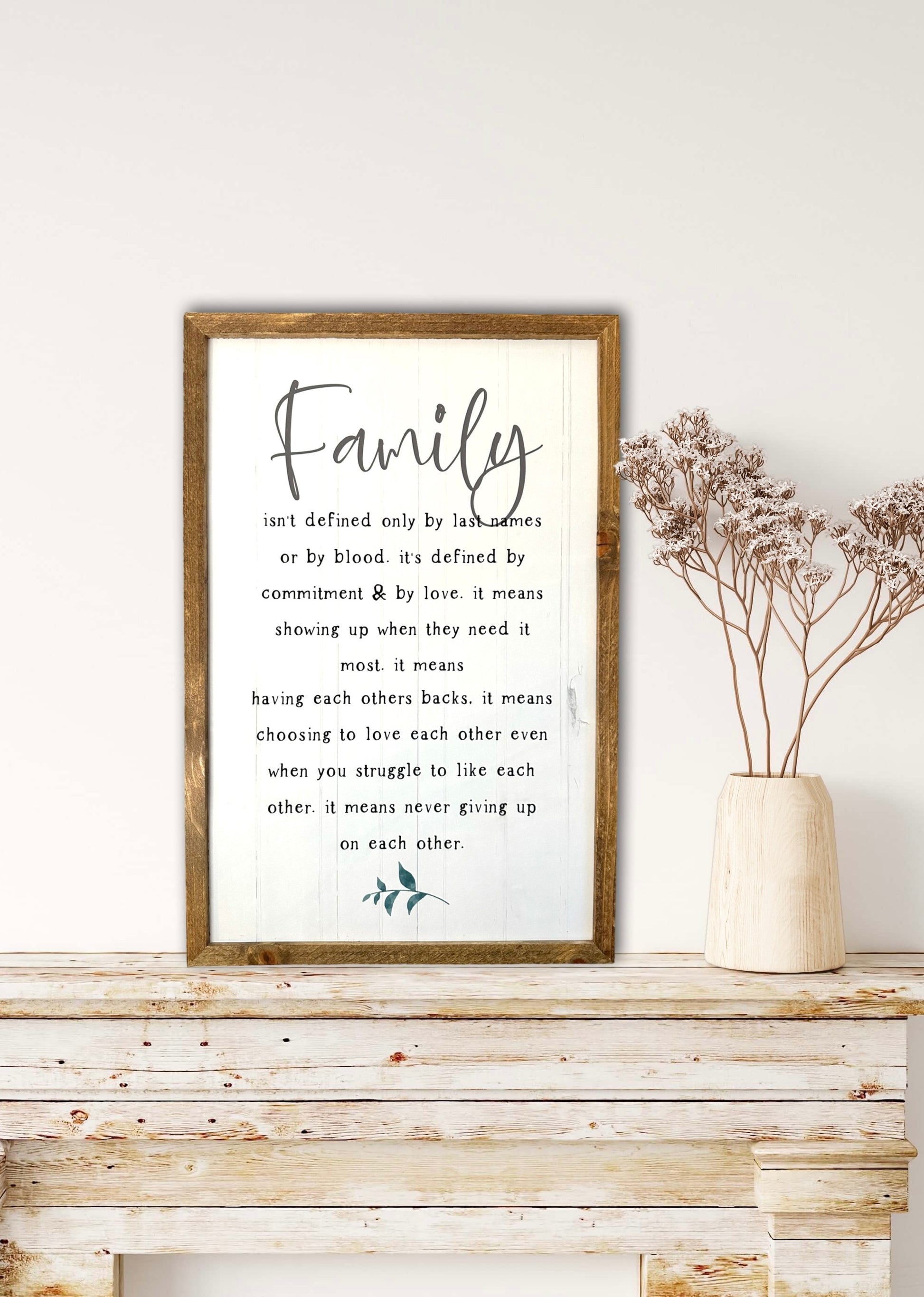 Family isn’t defined only by last name or by blood farmhouse wood sign
