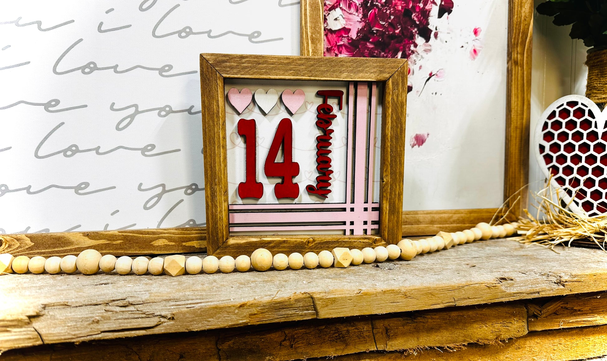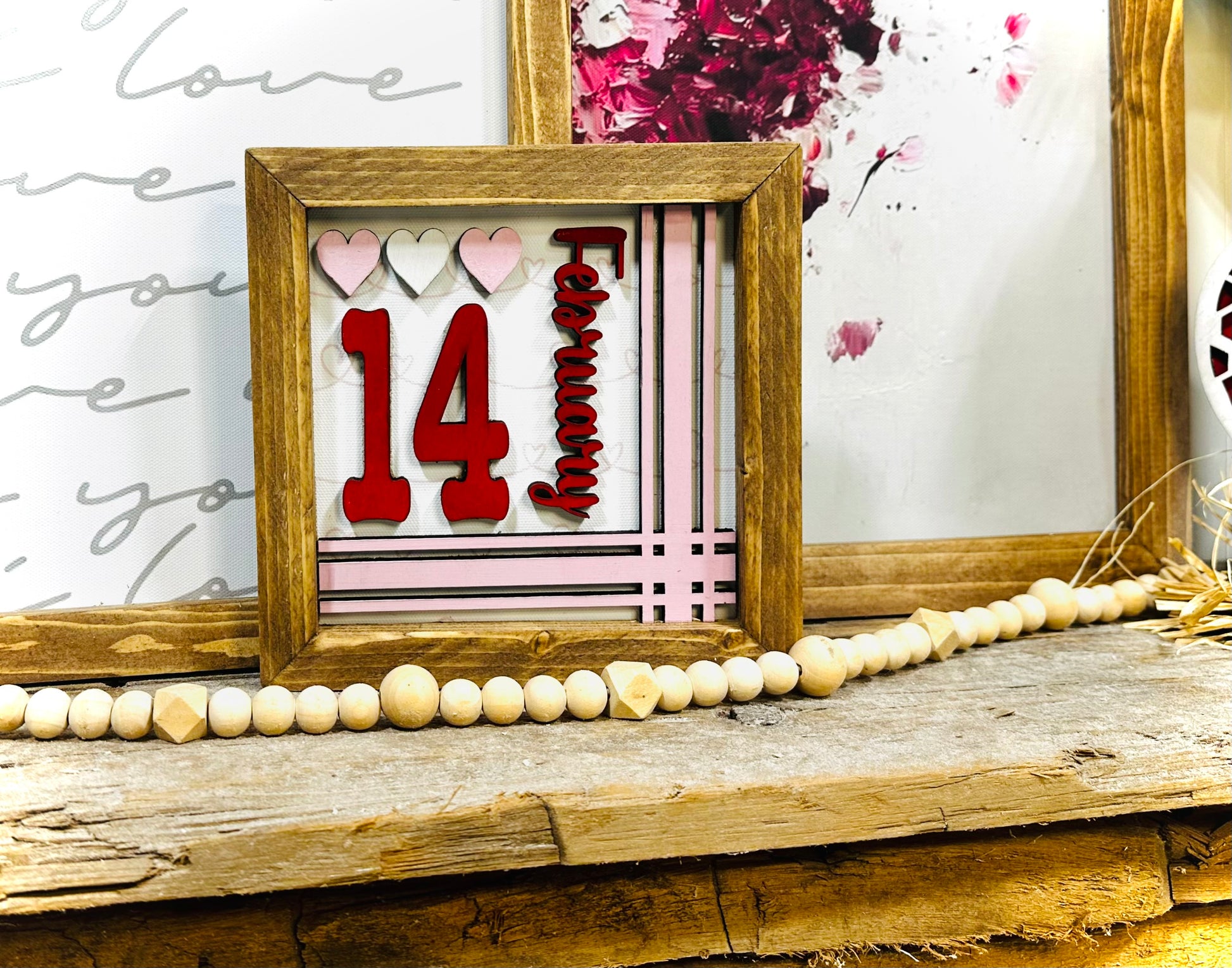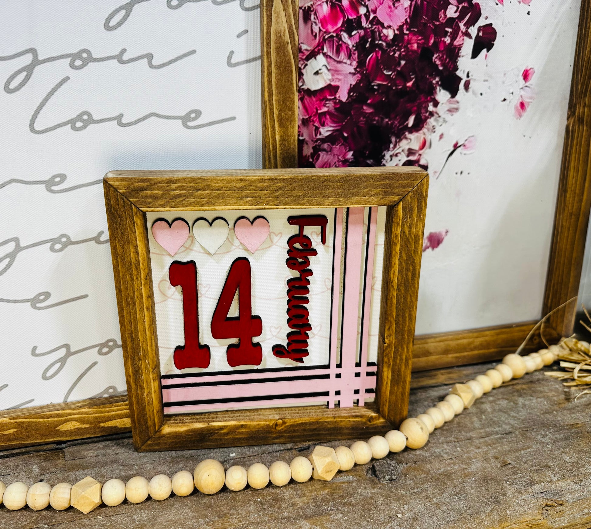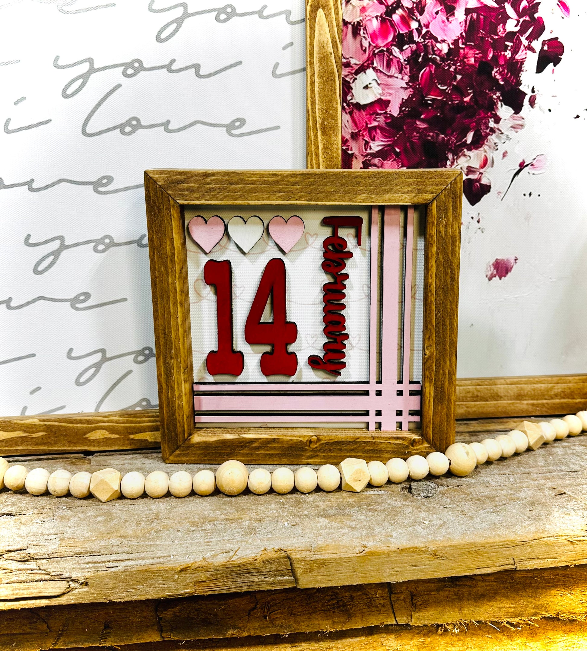 Hand painted February 14 wood framed Valentines sign