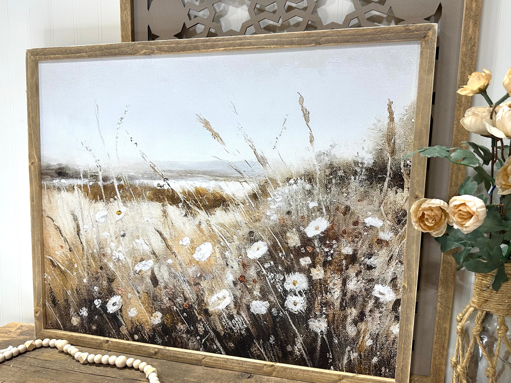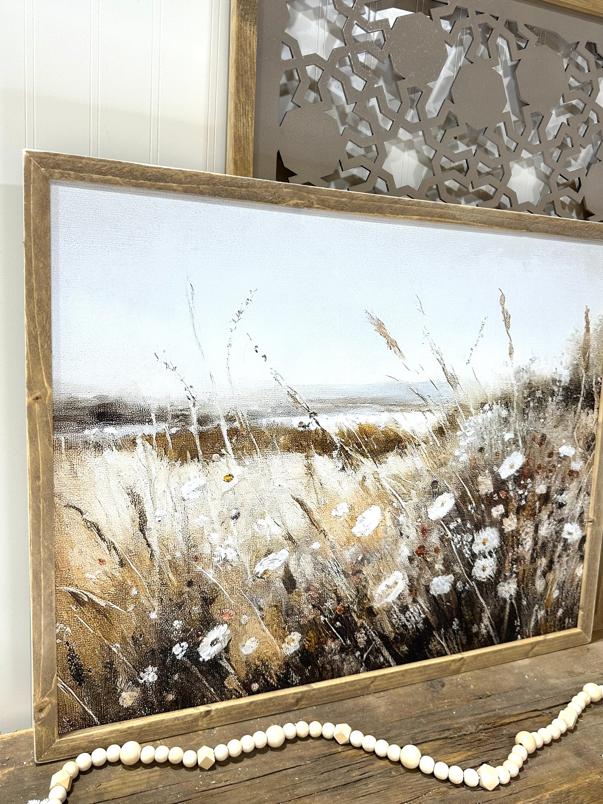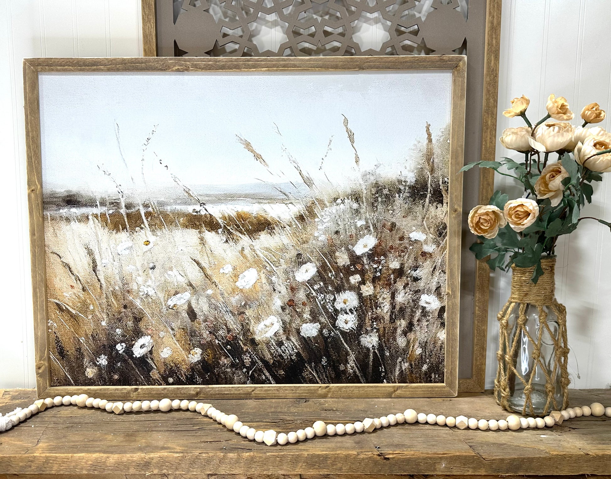 Offered in several sizes and framed in 1 inch light weathered oak stained frame.