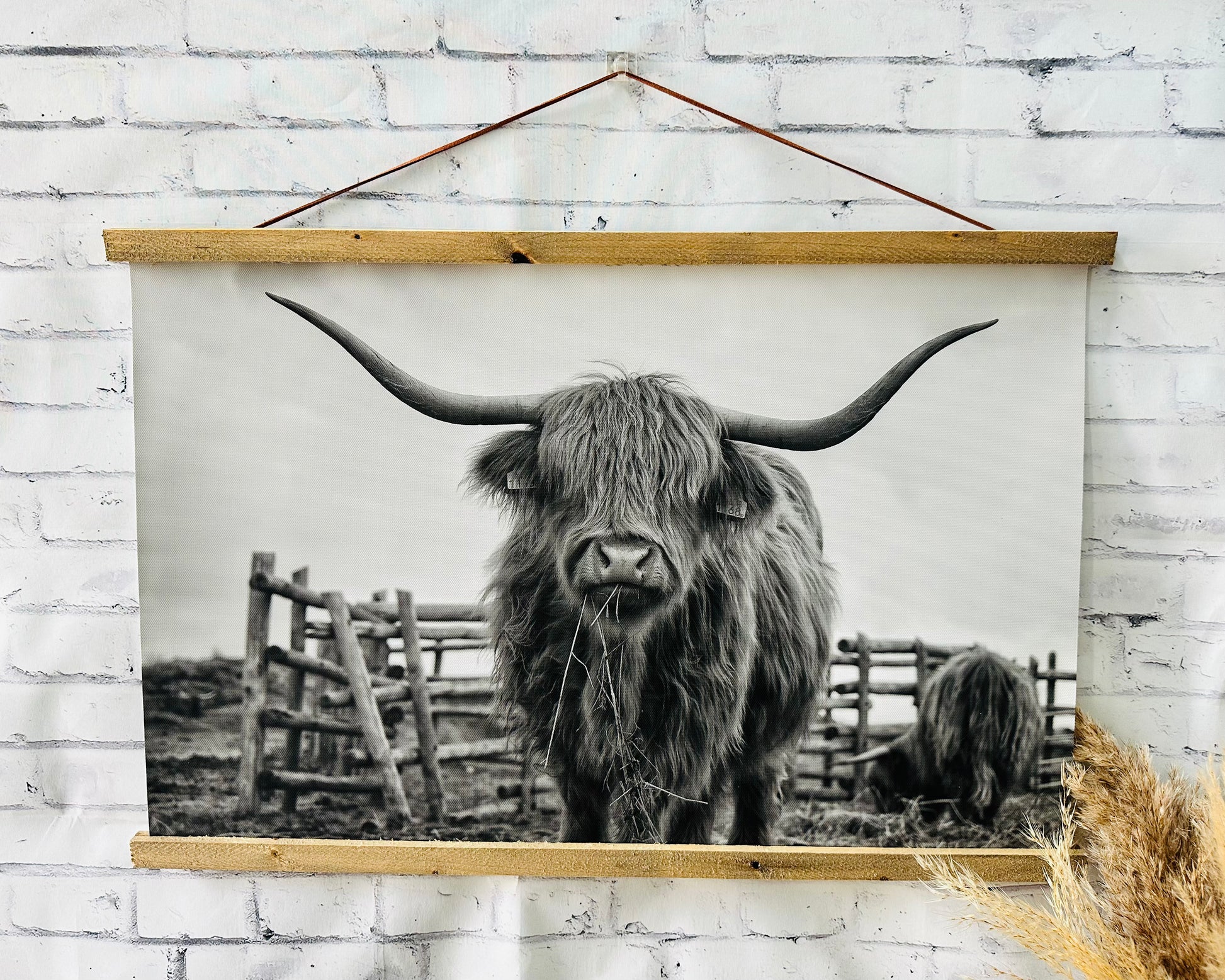 sign is printed on high quality canvas with wood slats at the top and bottom and faux leather cord attached. These signs are nice and light weight for easy hanging.