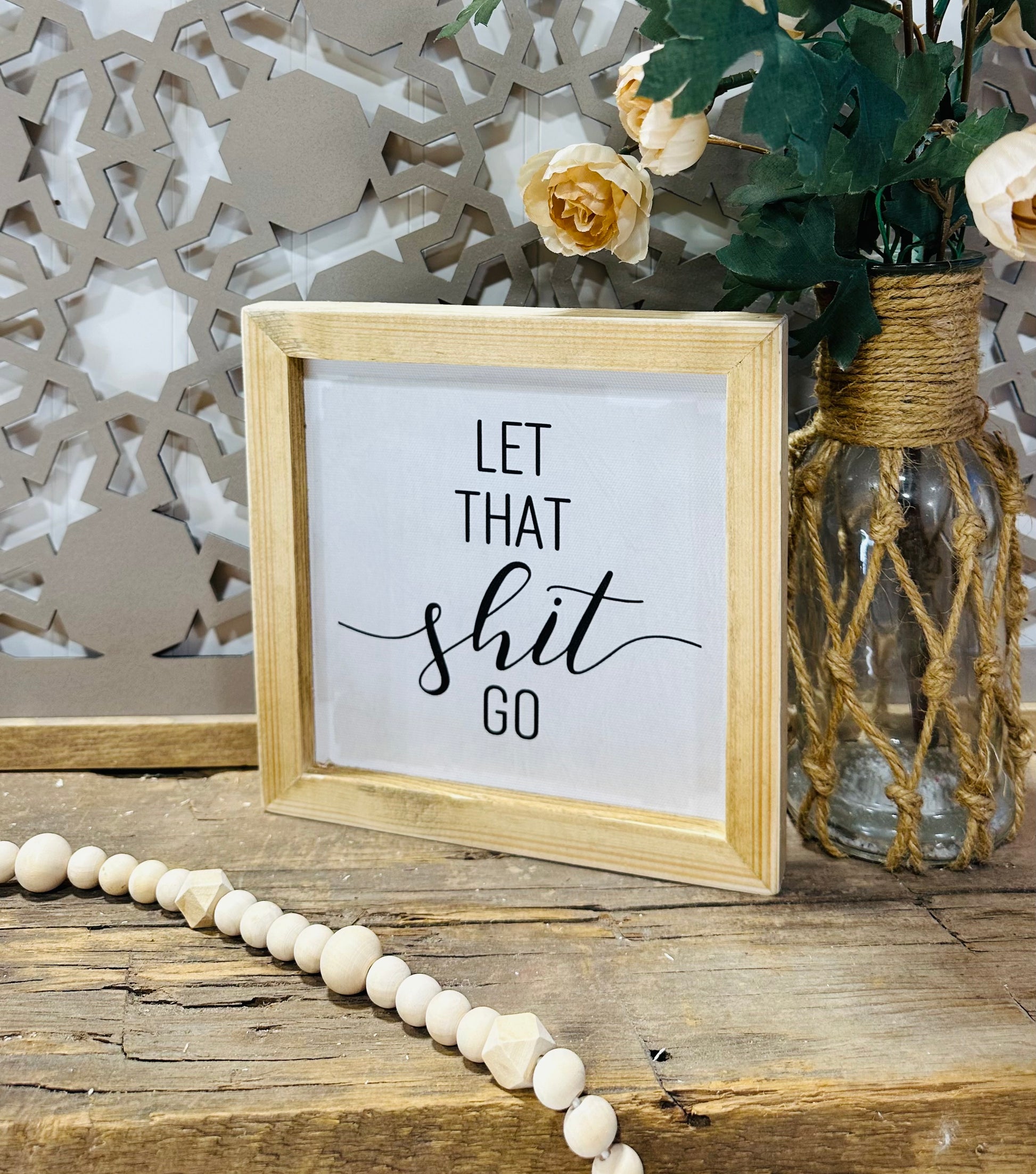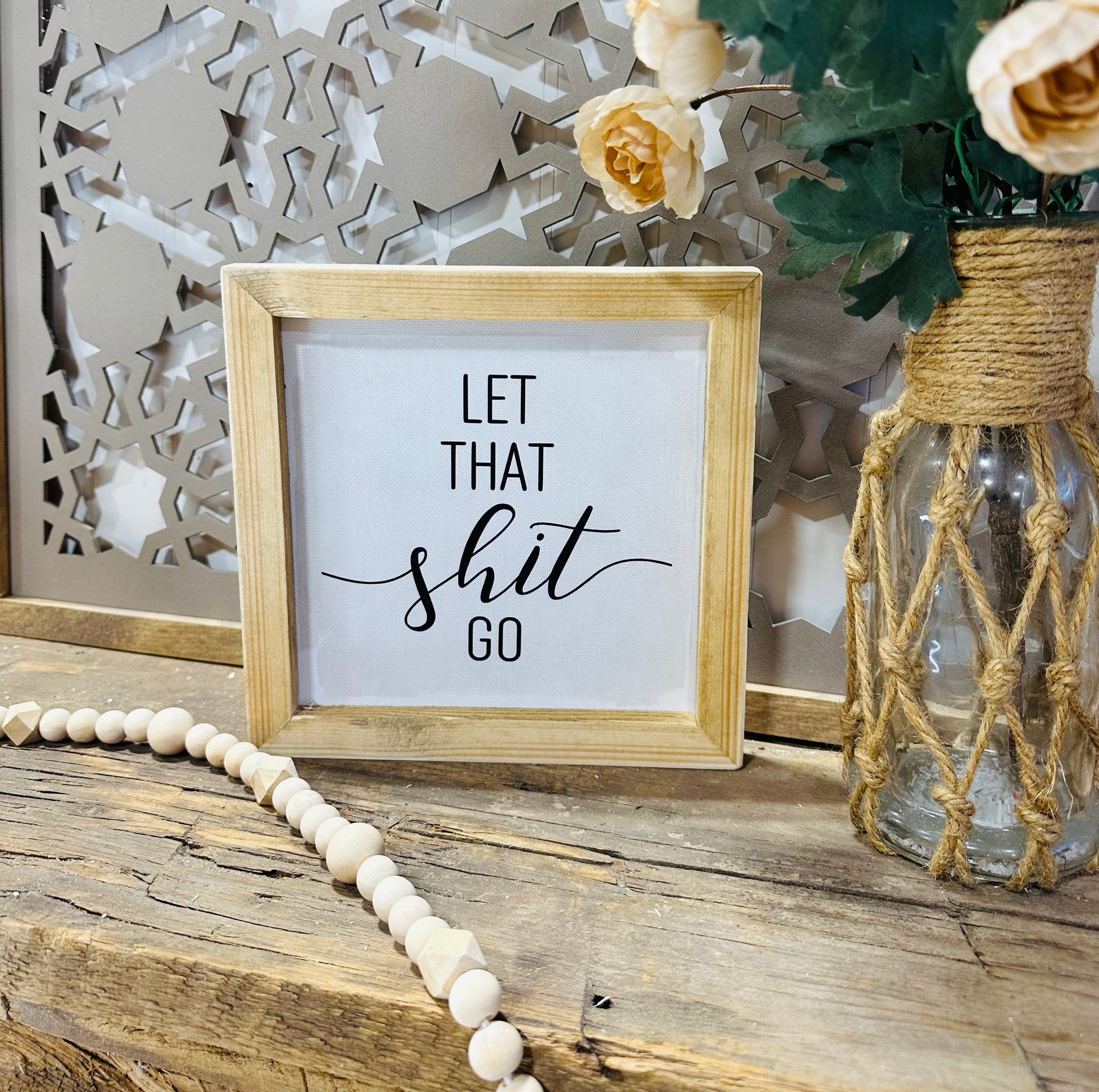 sign measures 7x7 and is framed in a 1 inch light weathered oak stained frame.
