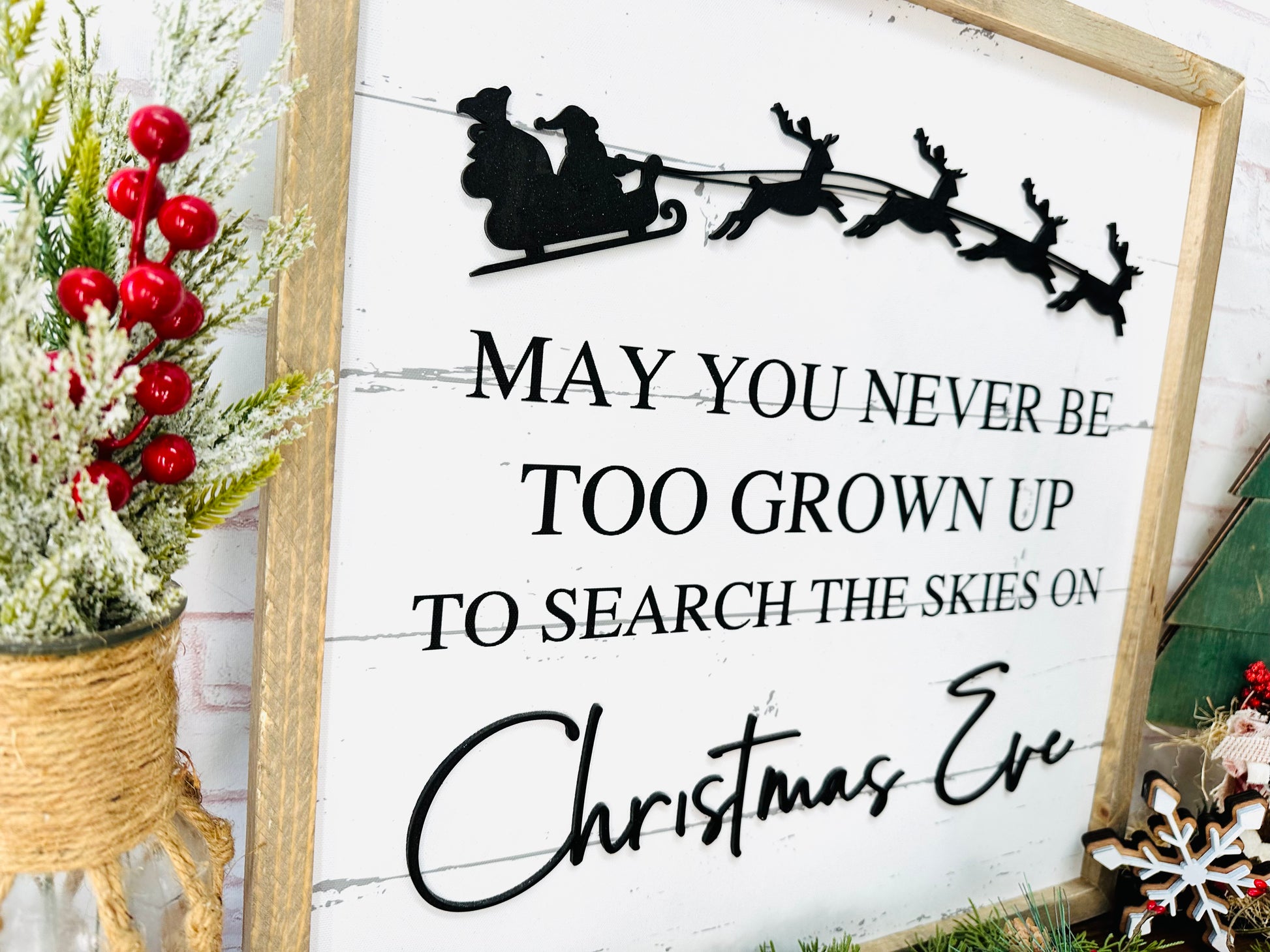 May you never be to grown up to search the skies on Christmas Eve canvas framed sign