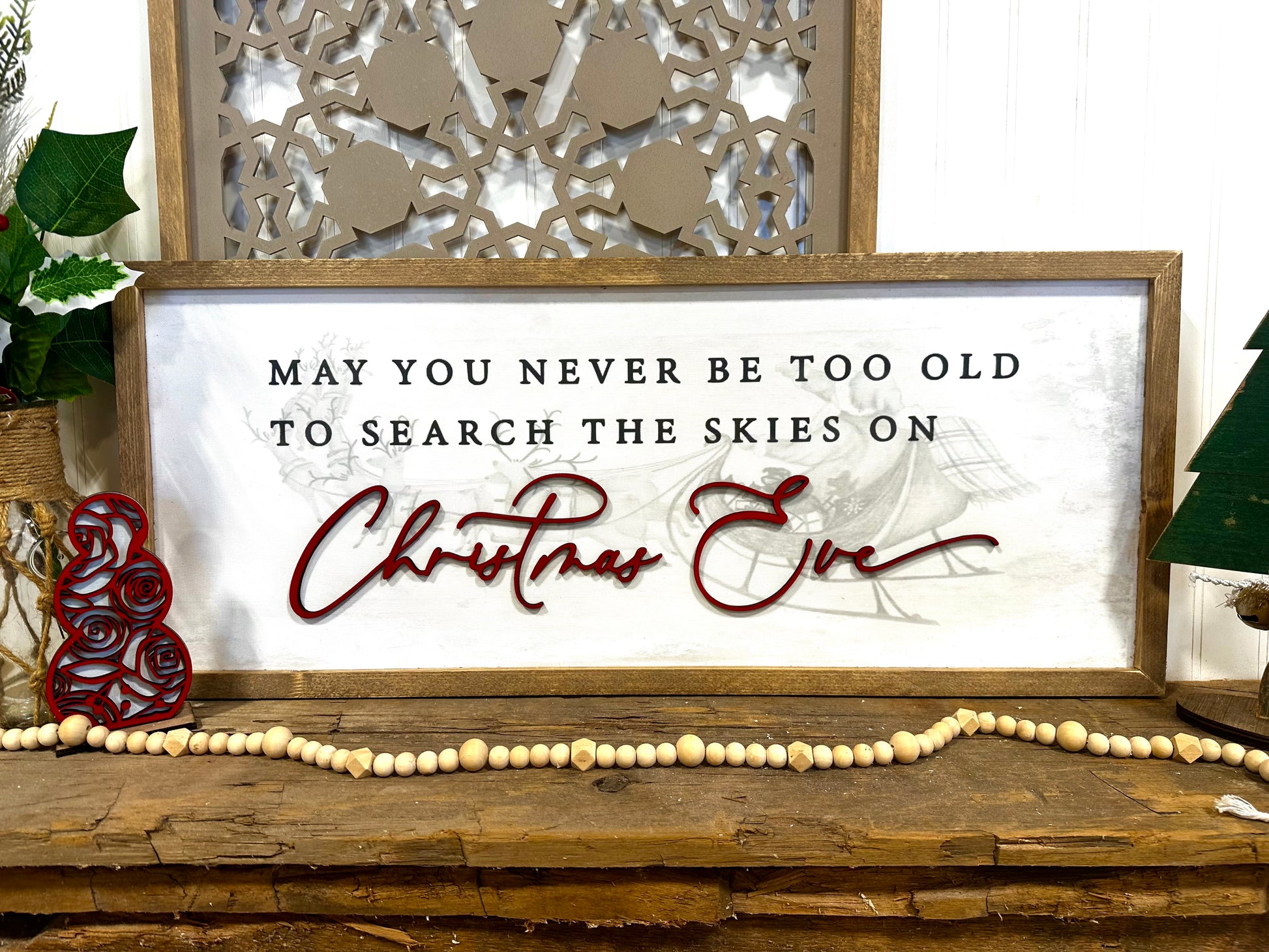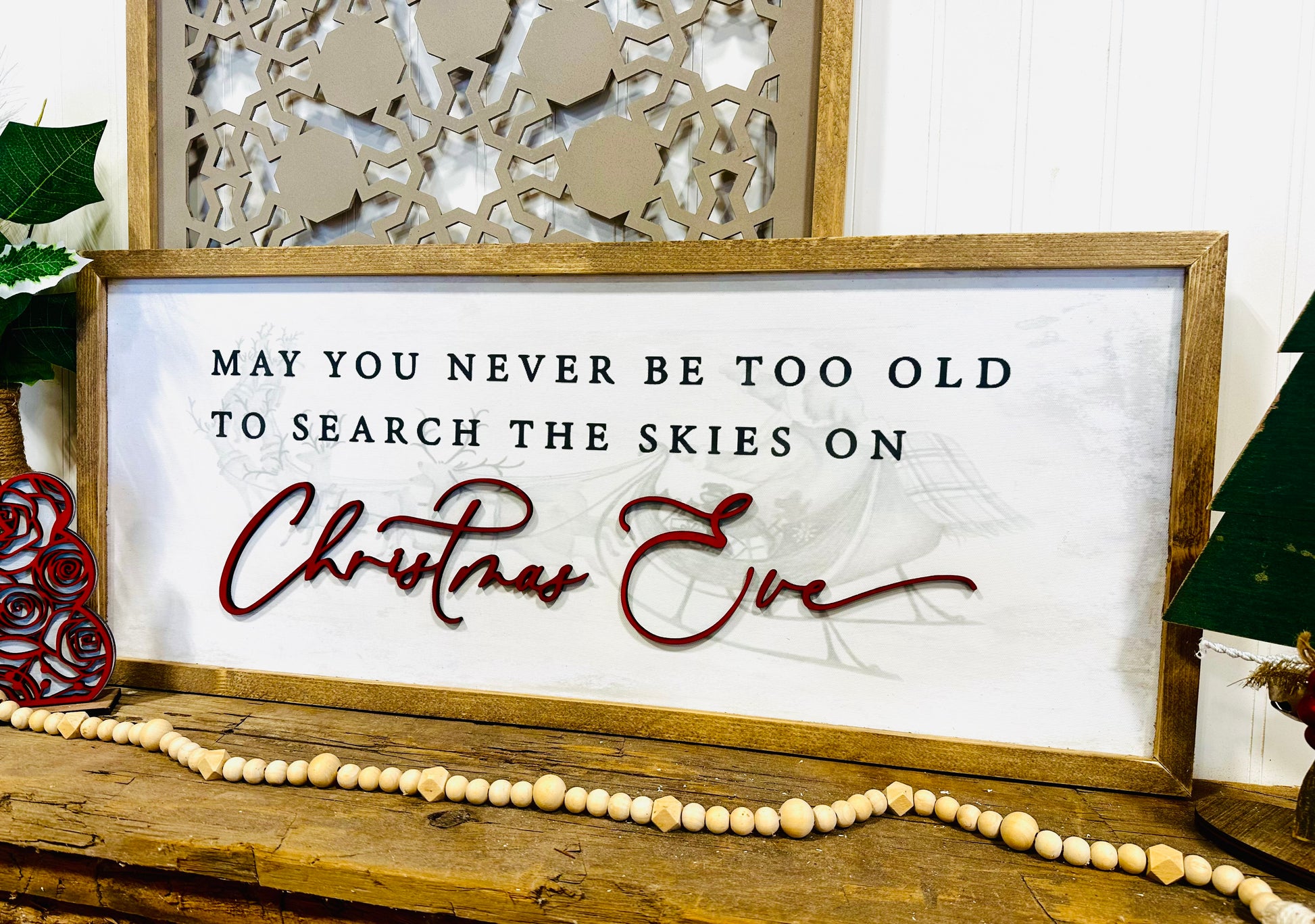May you never be too old to search the skies on Christmas Eve wood framed canvas print