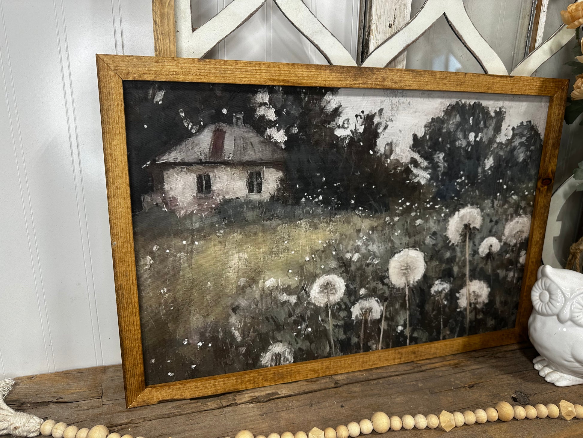 Offered in several sizes and framed in 1 inch light weathered oak stained frame.