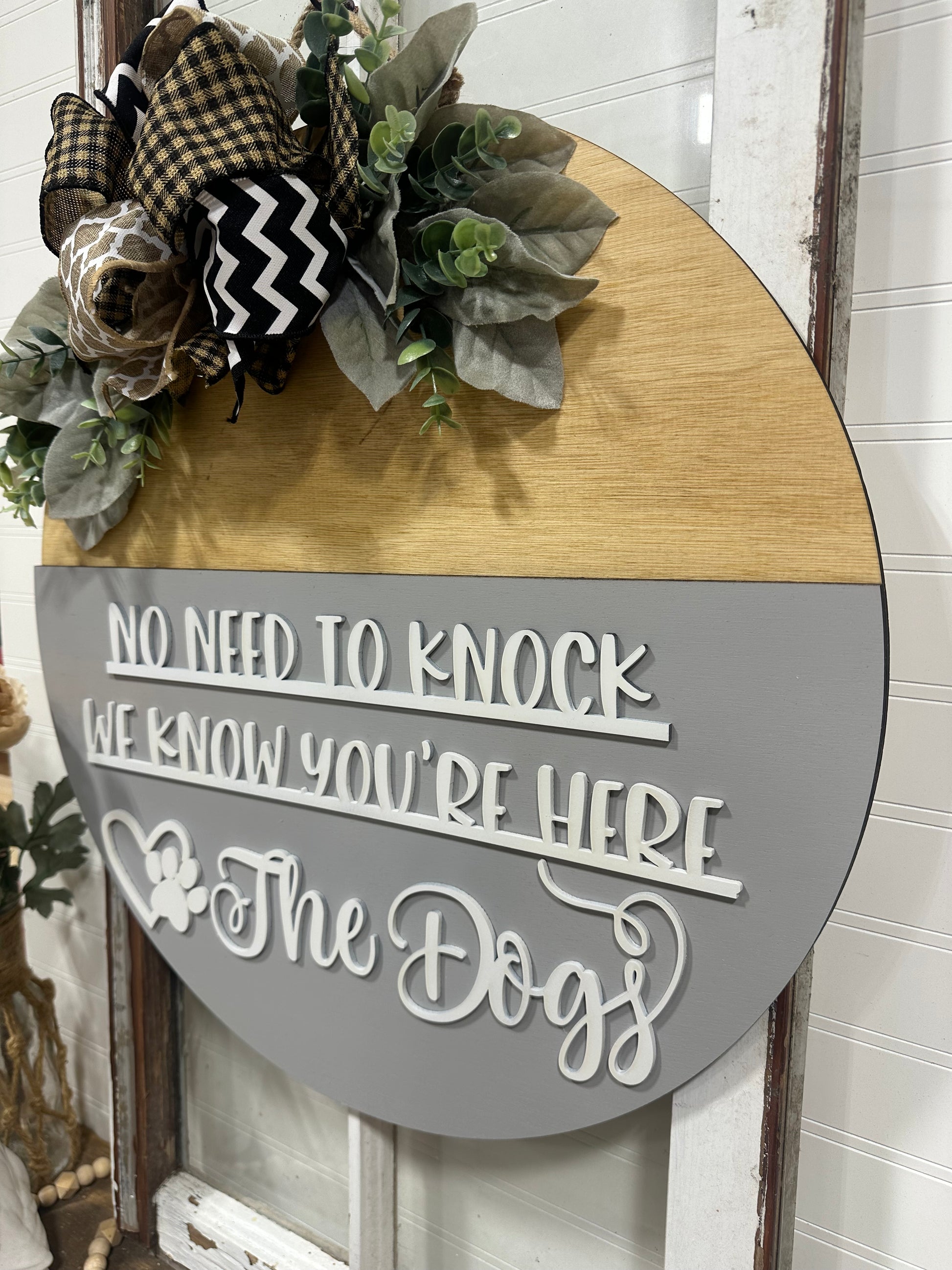 sign backer measures 1/4 inch and layered with 1/4 inch wood. Lettering is laser cut from birch plywood and hand painted. Greenery and bow attached.