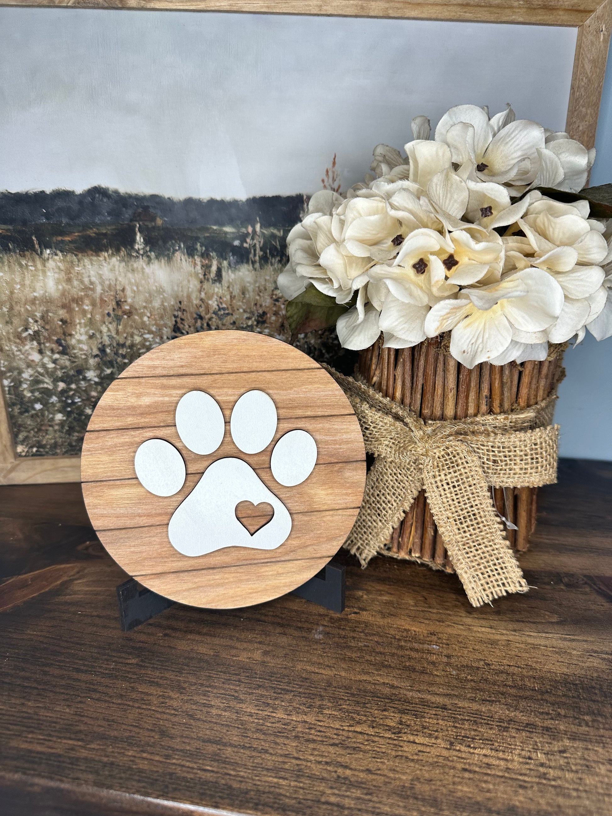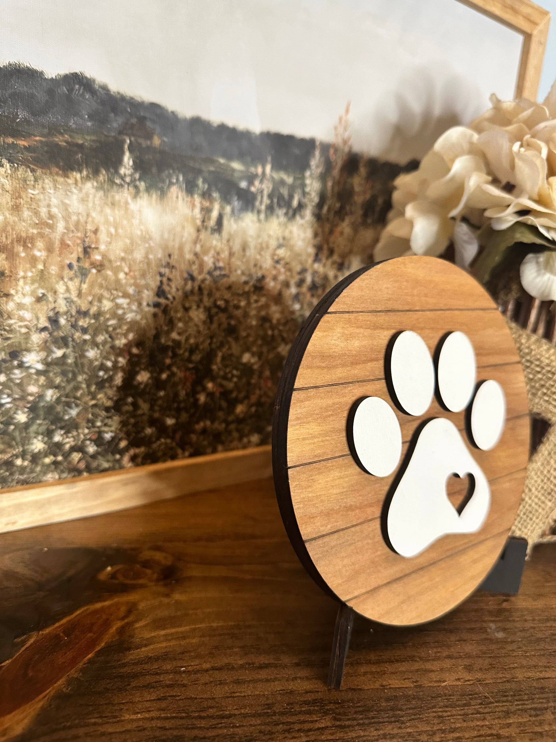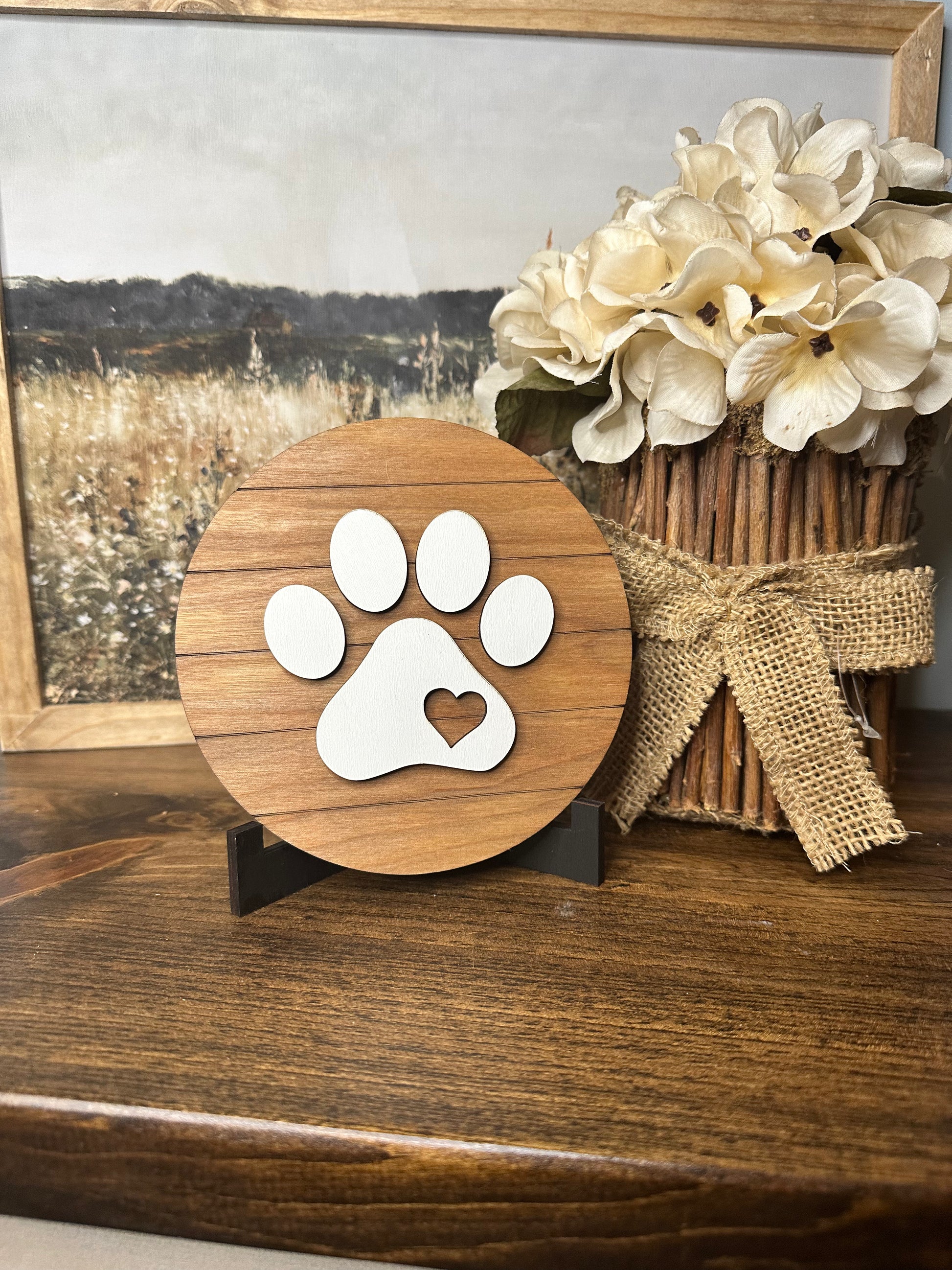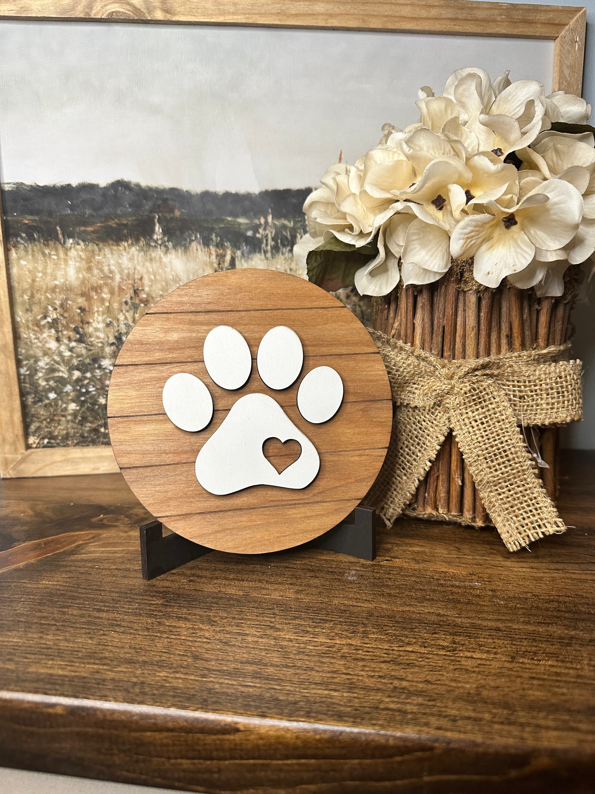 sign measures 6 inches in diameter and is 1/2 inches thick. An easel is included in the purchase of this sign to display on a shelf or it can also be propped up against something.