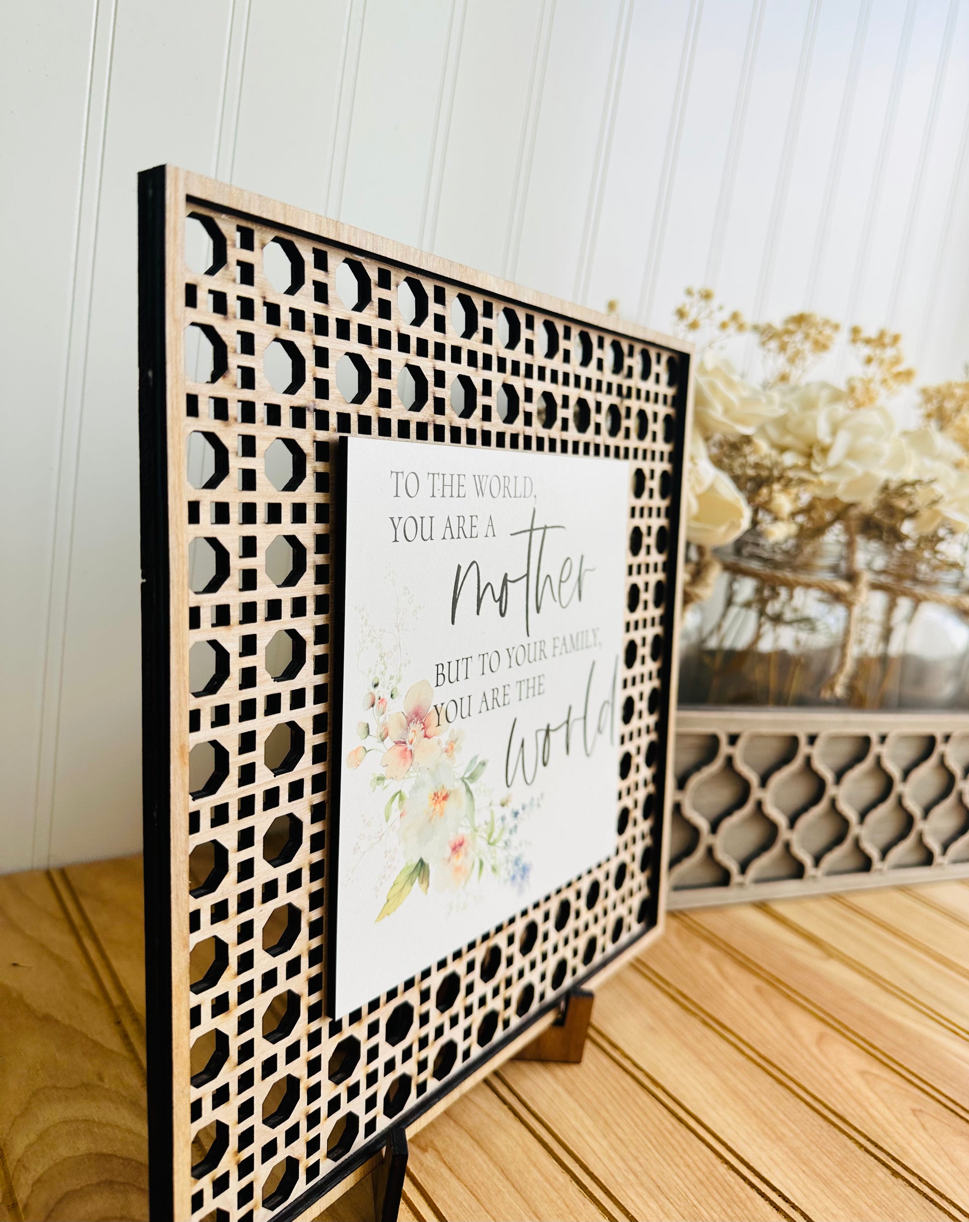Lettering and Floral pattern are printed with ink onto the white backer board.