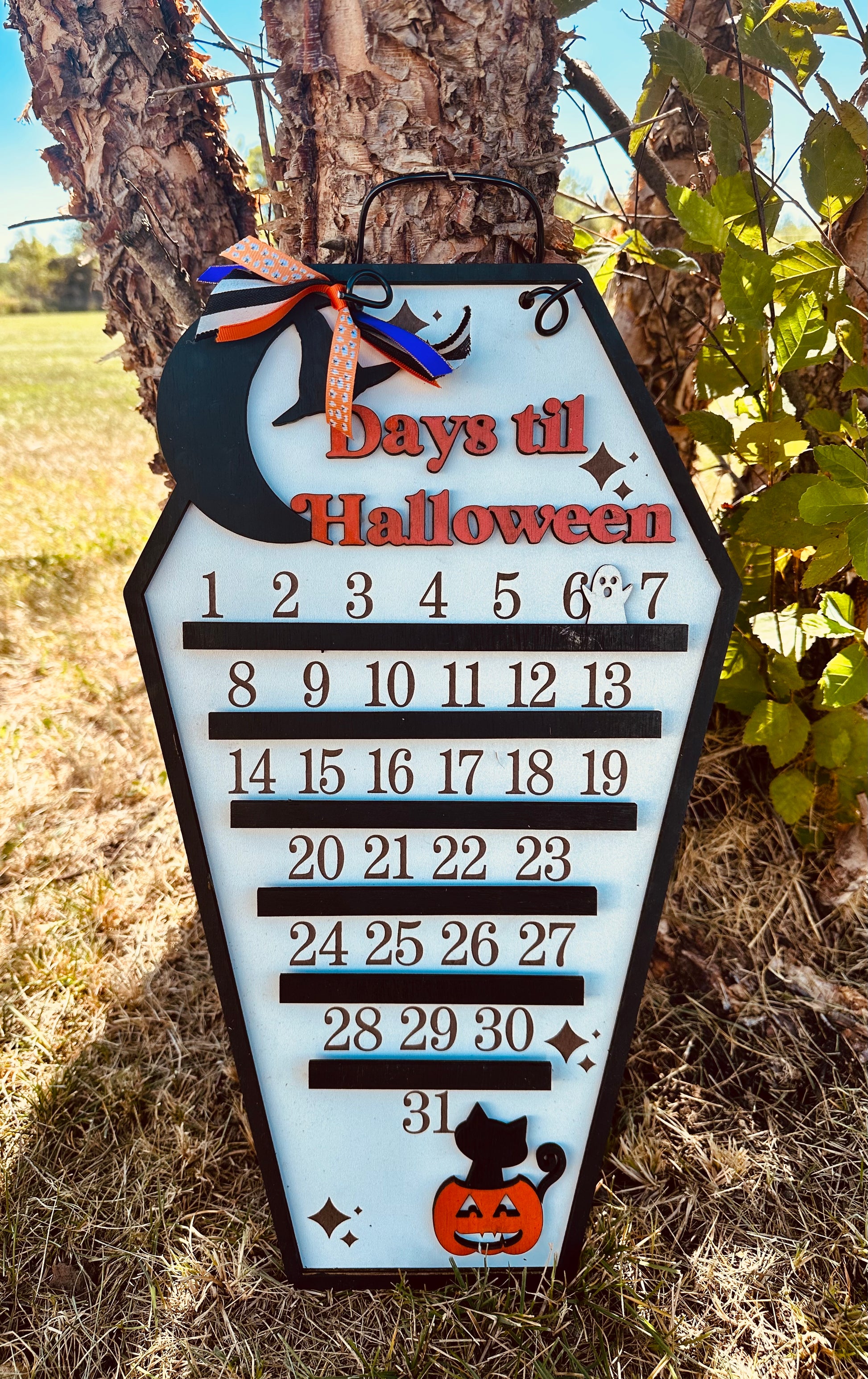 Wooden Halloween countdown with movable ghost
