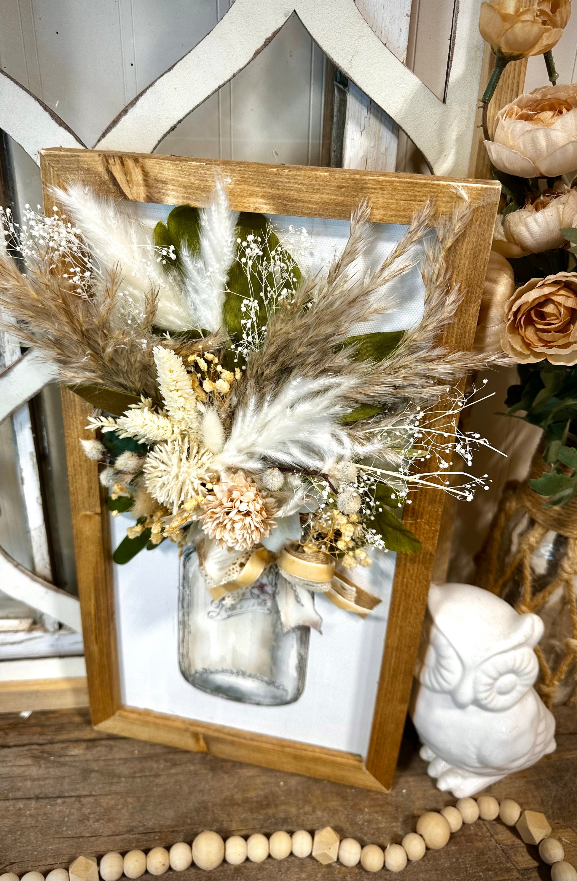• Our Frames are made of solid 1 inch pine and stained in weathered walnut and sealed
