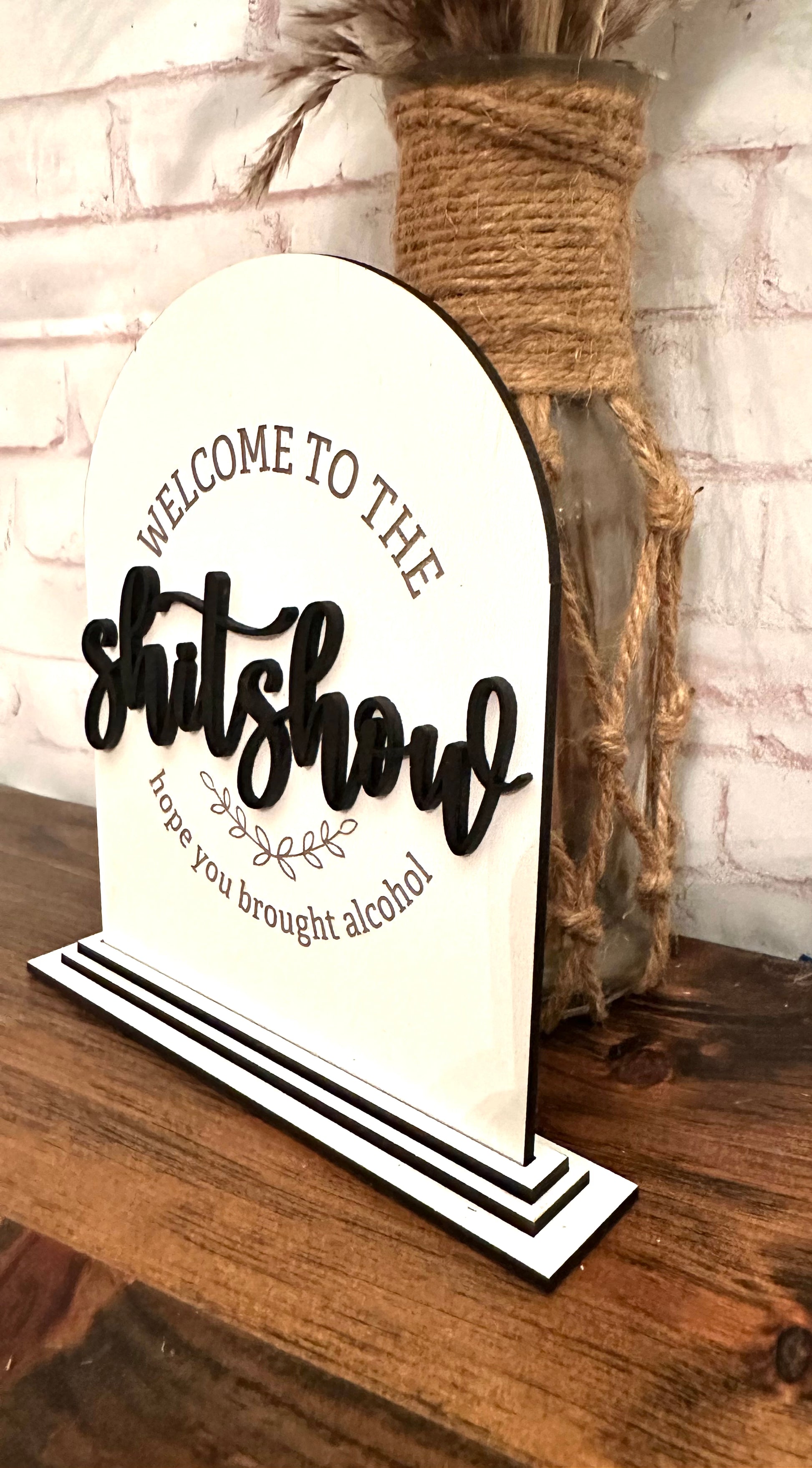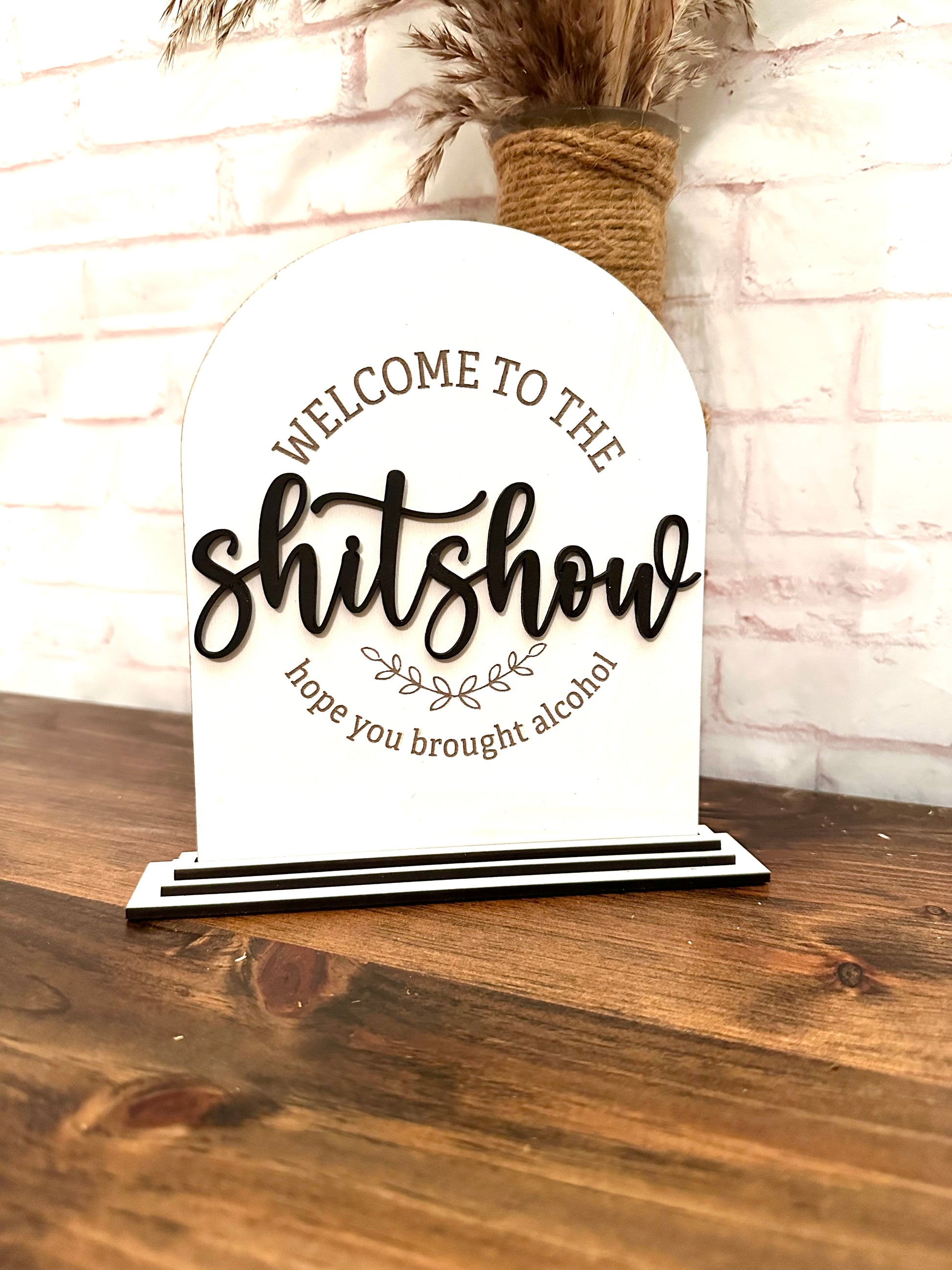 Welcome to the shitshow arch shaped table top sign